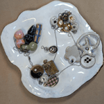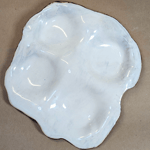 white stoneware marbled with stains and glazed white on top